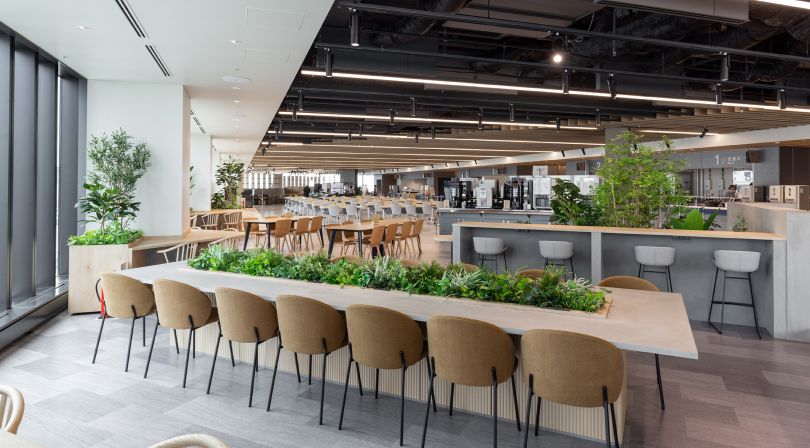 調理に必要な厨房機器や洗浄機器が設置されていない新しいタイプの社員食堂です。